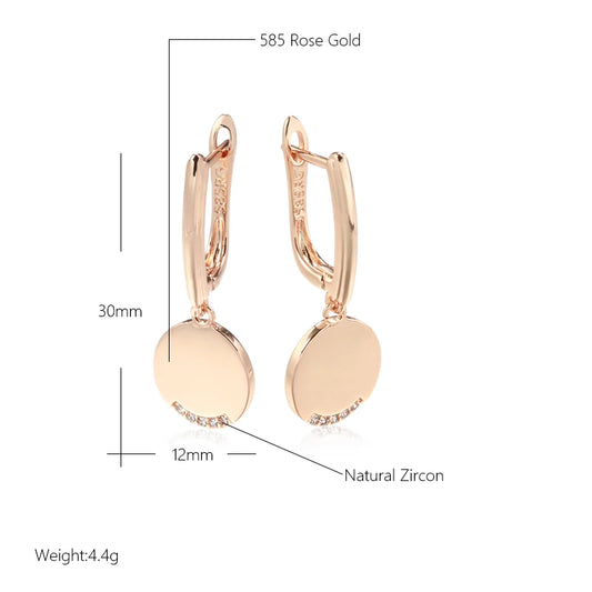 Kinel 585 Rose Gold Color Round Coin Dangle Earrings for Women Simple Fashion Party Fine Jewelry Glossy Natural Zircon Earrings